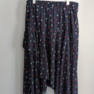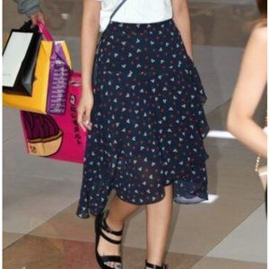 H&M Double Wrapover Chiffon Navy Blue Floral Skirt Women Size 10