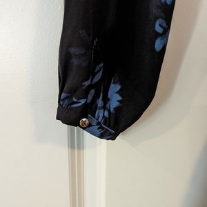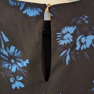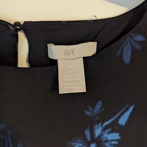 H&M Dress Size-2 Black with blue floral detail, keyhole opening on back, includes belt 100% Polyester Used, good condition