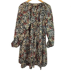 H&M Dress Black Floral Print Cottage Core boho peasant long sleeve size Small