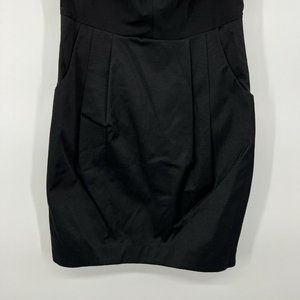 H&M Dress Womens Size 4 Black Sleeveless V Neck Bow Mini Sheath Pleated. New with tags. Back zipper. Adjustable straps. Front pockets.