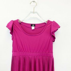 H&M Junior Girl Hot Pink Midi Dress 14Y+ Pleated Cap Sleeve Ruffle Empire Waist Features - Stretchable, Empire waist, Pleated, Ruffle Cap sleeve,