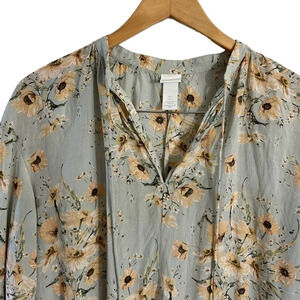 H&M Dress Size 2 Floral Sage Green Yellow Oversized Fit Long Balloon Sleeve Thin