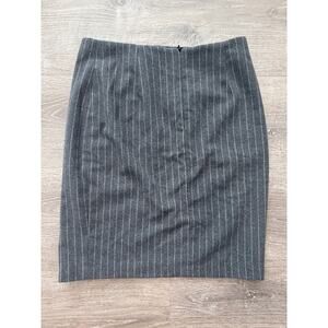The H&M dress skirt in size 8 is a stylish and versatile piece perfect for various occasions. The gray skirt with white stripes adds a touch of sophistication, with a knee-length pencil style that is flattering and on-trend. Made from a blend of polyester and wool in a flannel fabric, this skirt features a zip closure and a slit for added detail. Whether you're dressing up for a party, dressing casually for a night out, or styling it for a business meeting, this H&M skirt is a chic addition to any wardrobe.