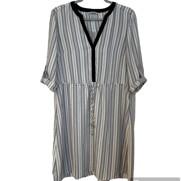 H&M Dress Striped Black & White Feathered Print Drawstring Waist V-Neck Size 14