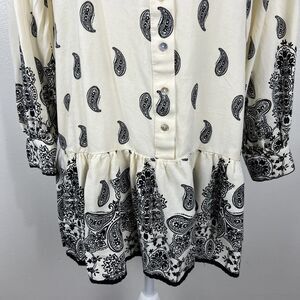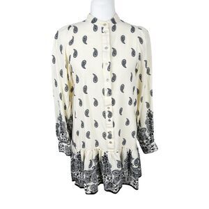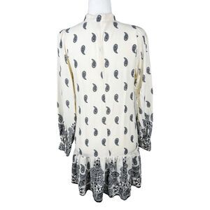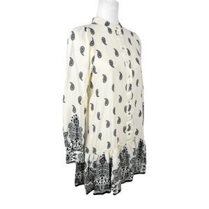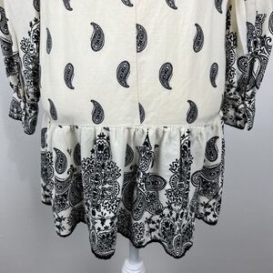 H&M Dress Women Small Beige Black Paisley All Over Print Long Sleeve Peplum Mini