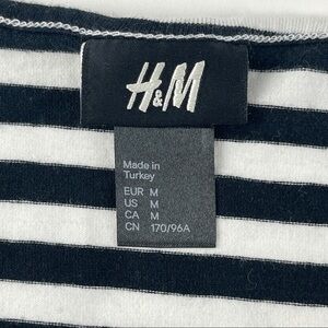 H&M Dress Womens Medium Blue White Striped Round Neck Scrunched Sleeve