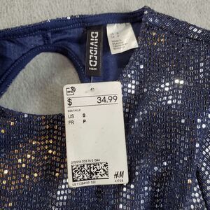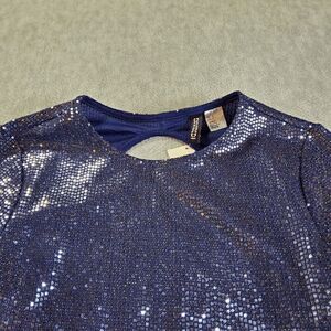 H&M Dress Womens Small Blue Sequin Metallic Cut Out Back Long Sleeve Round Neck