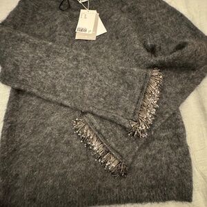 Beautiful and cozy chic HM Edition sweater with beaded detail, brand new with tags, xs. Mohair wool blend. Rich deep grey tones with delicate beaded detail at sleeve— stunning and subtle for the next holiday season. Super soft fabric and cozy warm. Part of a matching set— I have other listings for the matching skirt in small and medium, so do check those out! This listing is for the sweater only. Sold out very fast on website last winter; most resales are listed around $200. This is a steal!