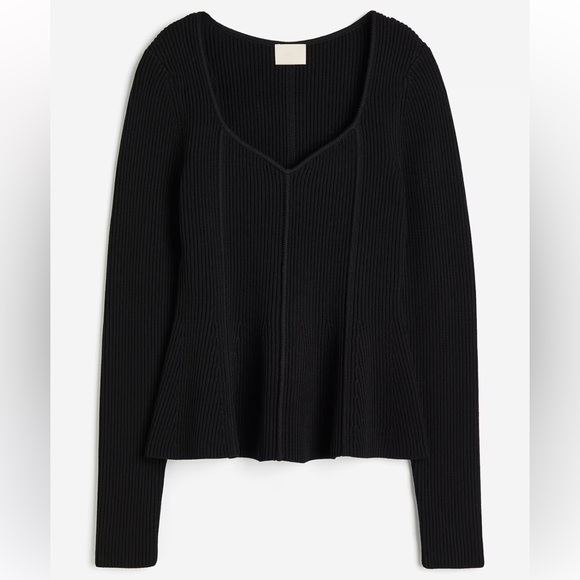 Fitted top in a soft rib knit. Sweetheart neckline, boning-inspired details at front and back, and extra-long sleeves. Gently flared hem.