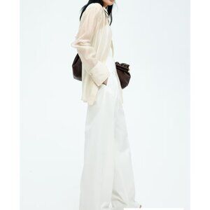 H&M Edition White Pleated Front Wide Leg Pants 12