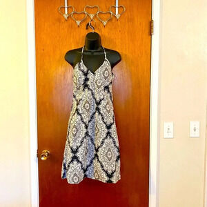 H&M Elegant Halter Neck Knee Length Dress Timeless Blue and White Baroque Print