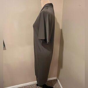 H&M Elegant Taupe Midi Shift Dress w/ side slits, short sleeves & V-neck, Small