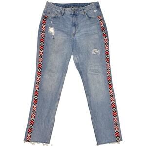 H&M Embroidered Mom Jeans Womens 10 Aztec Boho Southwestern Retro Cowgirl Casual