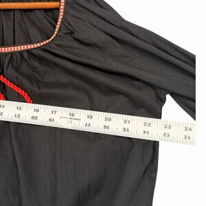 H&M Embroidered Peasant Blouse Black Womens Sz 6 Boho Tassel Top