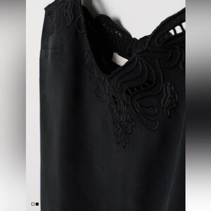 Sleeveless top in an airy weave with a V-neck, spaghetti straps and embroidery at the top.