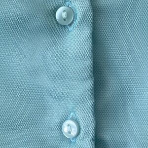 Sleeveless dress in tulle with embroidered flowers. Round neckline, button back, and tulle ruffles over shoulders and in tiers throughout dress. Lining in satin material.