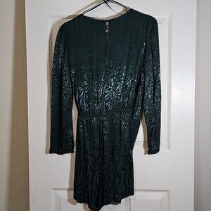 H&M Emerald Green Leopard Wrap Long Sleeve Shorts Romper Size 6