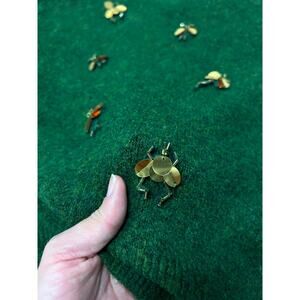 H&M Emerald Green Lightning Bug Dragonfly Gold Beaded Fairy Sweater Sz S