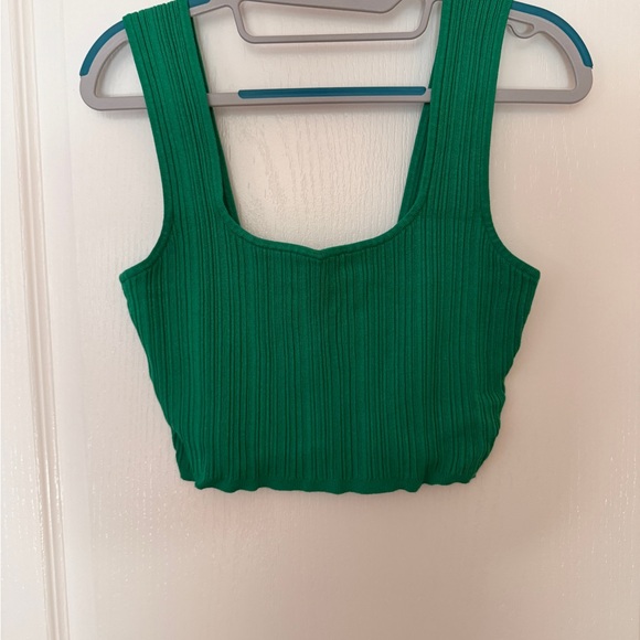 H&M Emerald Green Ribbed Square-Neck Crop Tank