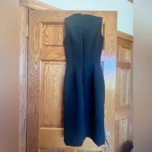 This Dress includes decorative gold buttons, and a slit on the dress. It also features a zipper and hook closure in the back.