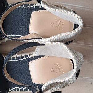 H&M Espadrilles Giselle Two Tone Canvas Slingback Closed Toe Heel Wedges Sandals