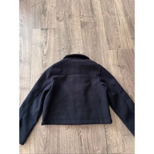Jacket in felted fabric. Collar, buttons at front, and patch front pockets with flap and snap fastener. Long sleeves with snap fastener at cuffs.