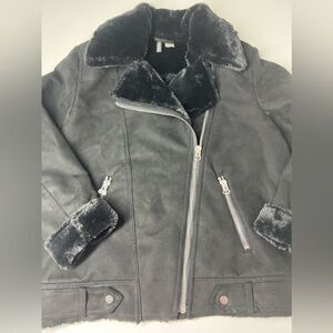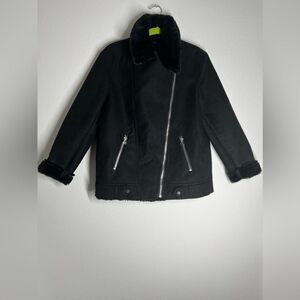 H&M Faux Fur-lined Biker Jacket Black Full Zip Aviator Size 8