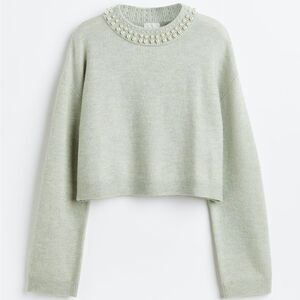 H&M Faux Pearl Beaded Neck Crop Sweater