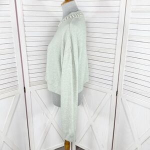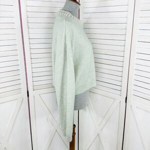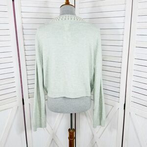 H&M Faux Pearl Beaded Neck Crop Sweater Mint Green Medium Long Sleeve
