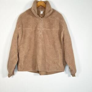 H&M Faux Shearling Pullover Sweatshirt Coat Jacket Teddy Camel Tan Beige