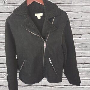 H&M Faux Suede Biker Jacket with Faux Shearling Lining - Size 2