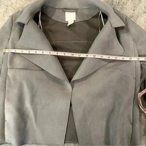 Soft suede feel, light gray, silver zippers on sleeve cuffs, cropped length, Excellent used condition