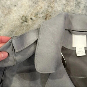 H&M Faux Suede Pocket Zippered Sleeve Gray Moto Jacket Size 4