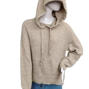 H&M Fine Knit Hoodie Sweater Size XS Oversized Oatmeal Color Long Sleeve