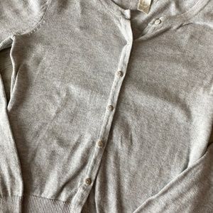 H&M Fine-knit Basic Cotton Cardigan Light Grey Marl Size XS
