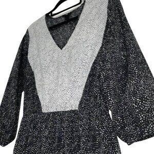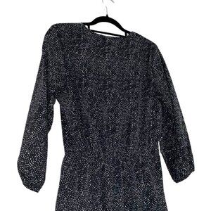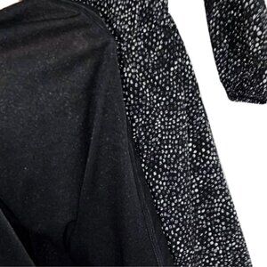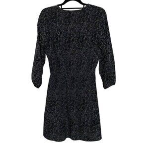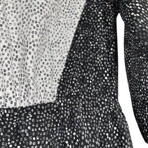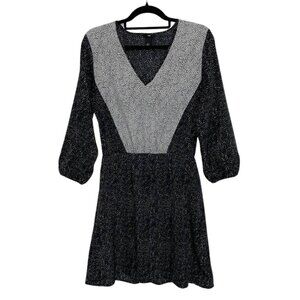H&M Fit & Flare V-Neck Dress Size 8 - Black White Speckle Print Long Sleeve Mini