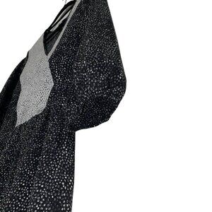 Color/Pattern: Black and White Speckle/Microdot Print.