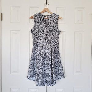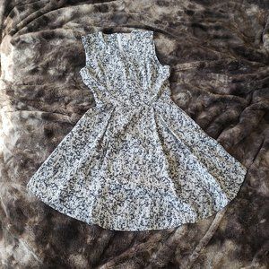 Fun and fitted black & white speckled pattern dress in size 8. Skirt has great movement and almost high-low effect with the sides. Very well tailored with details like concealed zipper.