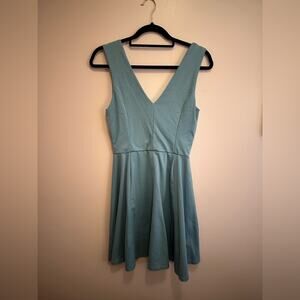 H&M Fit and Flare V Neck Light Blue Sleeveless Dress Small