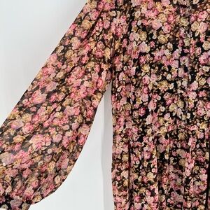 H&M Floral Chiffon Button Down Flowy Loose Boho Tiered Maxi Dress In Black Roses