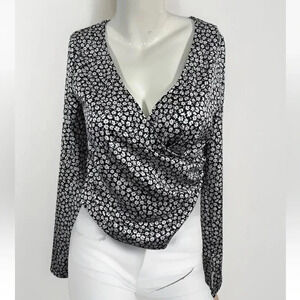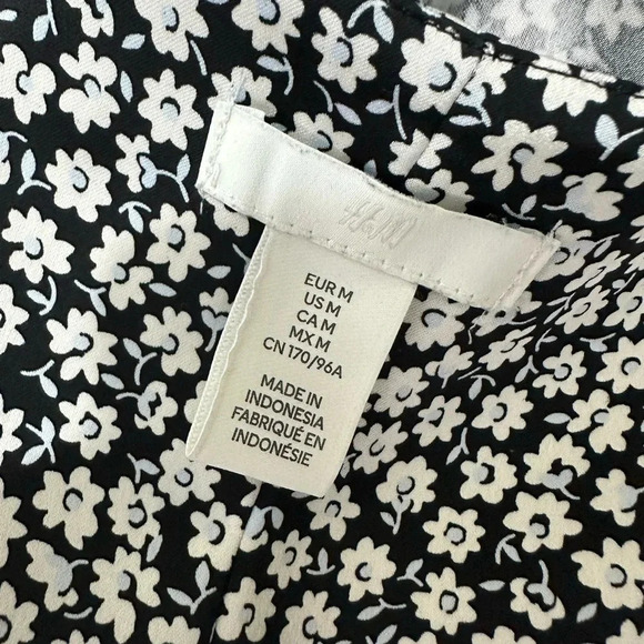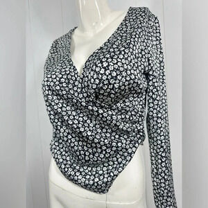 H&M Floral Double Breasted Long Sleeve Blouse Top Back Zip Ruched Sides