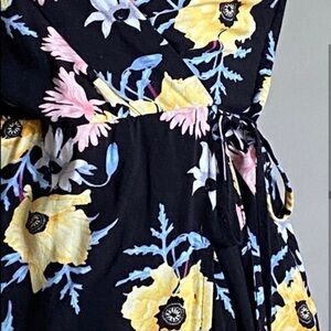 H & M Floral Black Maxi Dress Faux Wrap Split 6