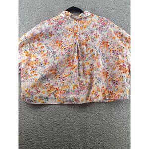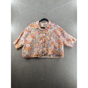 H&M Floral Linen Cropped Button-Up Shirt With 3/4 Sleeves Size XL
