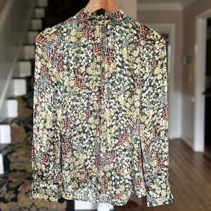 H&M Floral Long Sleeved High Neck Lightweight Blouse Navy Multi Womens Size XS