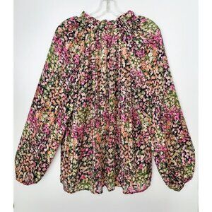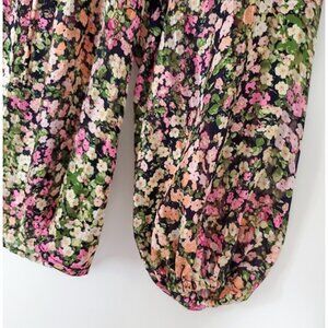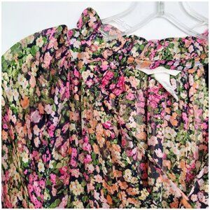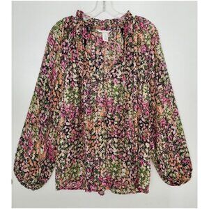 H&M Floral Long-Sleeve Frill-Trimmed Flowy Sheer Blouse Lightweight Boho Size L
