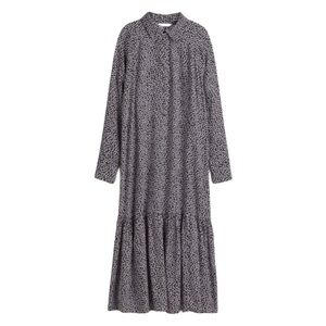 H&M floral midi dress, H&M long sleeve dress, black and white floral dress, monochrome patterned dress, H&M shirt dress, collared button front dress, business casual midi dress, chic office outfit women, floral print midi dress, everyday wear dress, versatile midi dress, preppy style dress women, fall layering dress, winter casual chic dress, modest work dress, black white boho dress, elegant patterned midi dress, trendy H&M floral print, casual shirt dress women, flowy long sleeve dress, minimalist