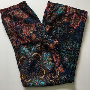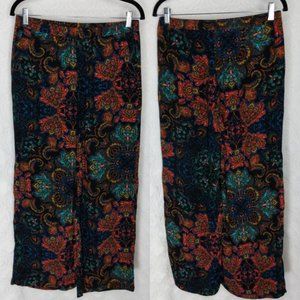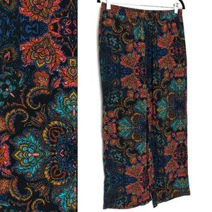Features: Flowy beachy wide leg pants with multicolor paisley design and elastic drawstring pull on waist. Please see photos for more details.