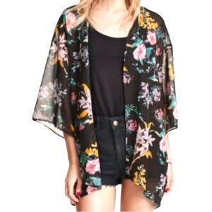 H&M Floral Semi Sheer Kimono Cardigan Top, M
