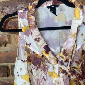 H&M Floral Sleeveless Tie Neck Button Down Shirt Women's Size 2