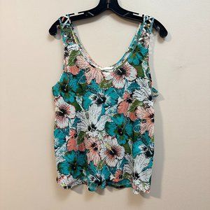 H&M Floral Tank Top. Size M. Flowers in a tropical color with a cutout crisis cross strap pattern. Smoke-free, pet-friendly home.